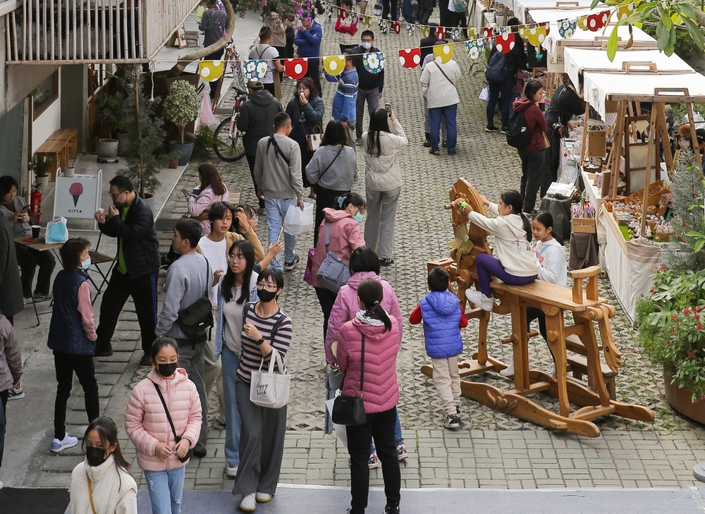 山樣子美食基地全新開幕,結合「木頭人市集」近50攤創意攤位吸引人潮。(圖/記者任芳葵攝)追求奢華饗宴的饕客被【初物鐵板燒 鍋物】的「初物山珍海味」吸引,嚴選台灣在地食材入菜,細膩呈現出如山海般澎湃卻簡單美好的風味。懷舊風味也不缺席,【八之五食堂】的「招牌豬腳飯佐小菜組」以濃郁的醬汁和入口即化的豬腳,喚起了無數人的童年記憶,也牽起了店家老闆與長輩的連結。