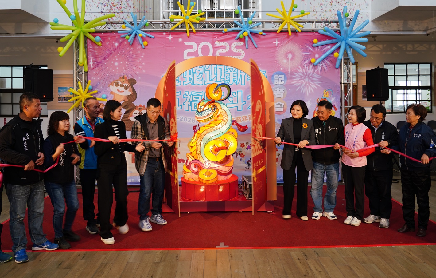 斗六市公所於今日在市公所中庭舉辦記者會,特別揭曉本次活動的「蛇年迷你主燈」。(圖/記者蘇峯毅攝)