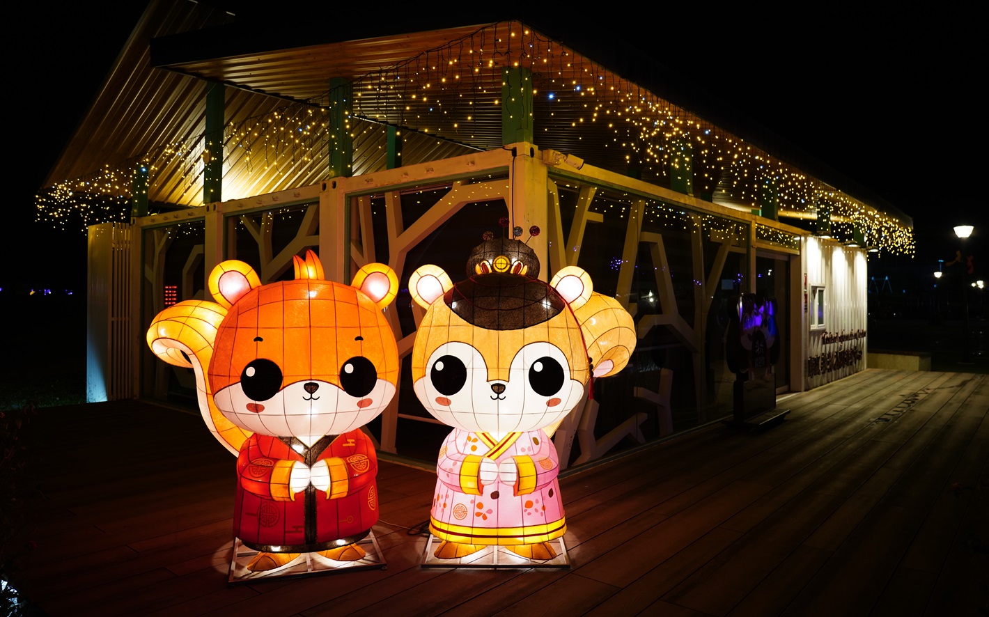 在碰膨鼠森林公園打造大型花燈營造不一樣的燈會氛圍。(圖/記者蘇峯毅攝)
