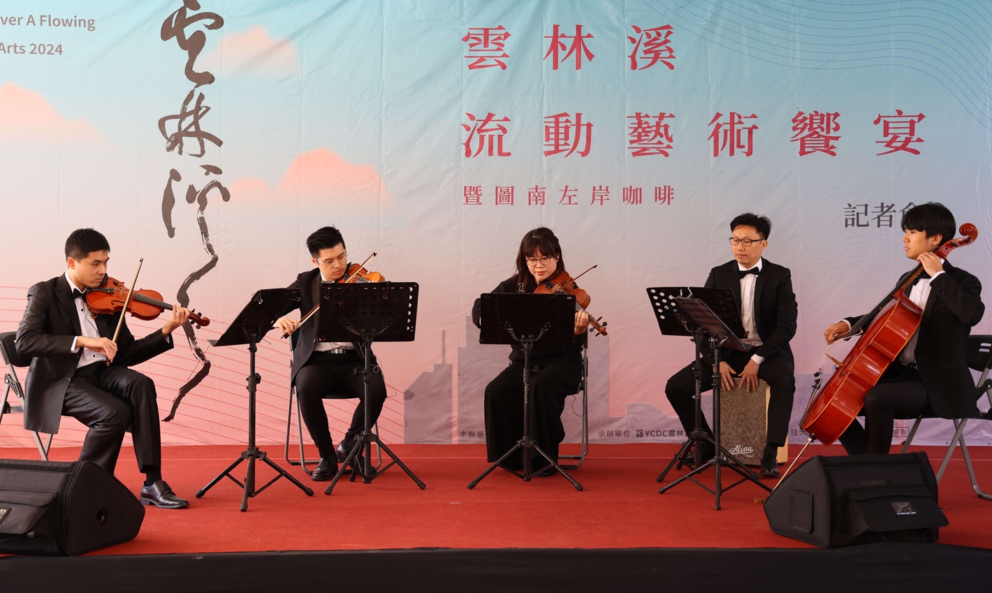 雲林溪流動藝術饗宴4大團隊「樂興之時管絃樂團」、文學家「曾美滿老師」、「溯NJ4藝享空間」、「雲林縣婦幼非營利幼兒園」共同呈現。(圖/記者蘇峯毅攝)
