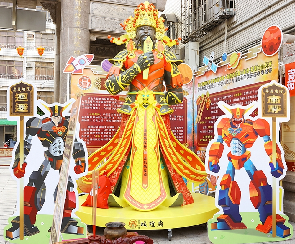 嘉義城隍廟融合文化、信仰、藝術創新,全台獨創高達375公分的「天衛機神」。(圖/嘉義市城隍廟提供)