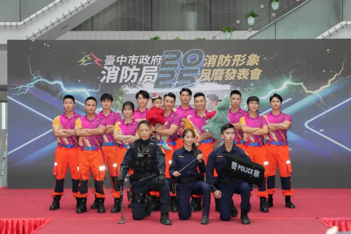 【記者林獻元台中報導】台中市政府消防局19日舉辦2025消防形象月曆發表會,共有15位形象人員參與拍攝,充分展現台中消防猛男女力的活力與魅力。消防局表示,此次2025消防形象月曆拍攝有嶄新的嘗試,除了邀請義消參與之外,更特別邀請重磅嘉賓—台中市警察同仁,加上消防親子一同拍攝入鏡,以「一起守護家園,傳承幸福」為主題拍攝概念。副市長鄭照新也代表出席發表會,盼透過此活動深植全民消防意識。