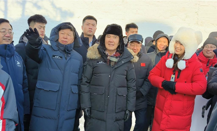 【記者劉新維大陸報導】前總統馬英九率「大九學堂」學員第3度訪問中國大陸,19日首個行程是到哈爾濱太陽島觀賞冰雕。由於早上當地氣溫低達零下14度,馬英九自嘲打扮得像一隻「北極熊」。