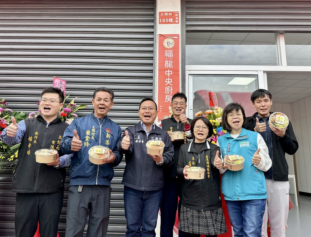 (記者任芳葵嘉義報導)嘉義縣新港鄉福龍協會提升多元長期照護,於22日舉辦中央廚房開幕揭牌典禮,專為65歲以上長輩製訂餐食,由縣議會議長夫人黃瓊賢、鄉長葉孟龍、議員黃啟豪、簡嘉億、林秀琴及三間村村長蕭金修、中洋村村長江德欽一同揭開牌匾,中央廚房的成立將可以為據點長輩及社區做更多的餐食服務。