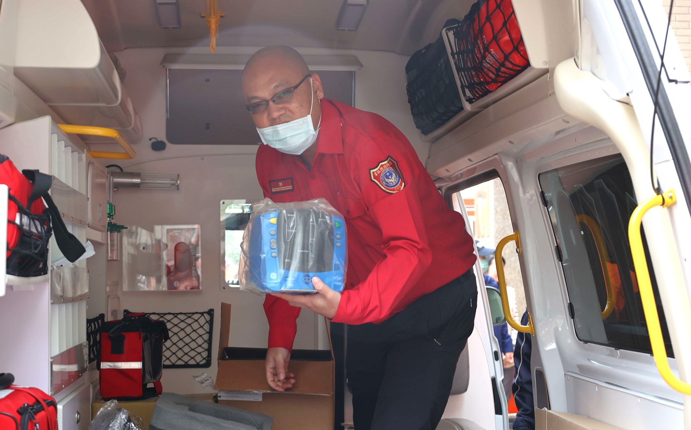 楊美月捐贈救護車內配自動給氧機、院前超音波等高端設備,保護每條需要緊急救護的生命。