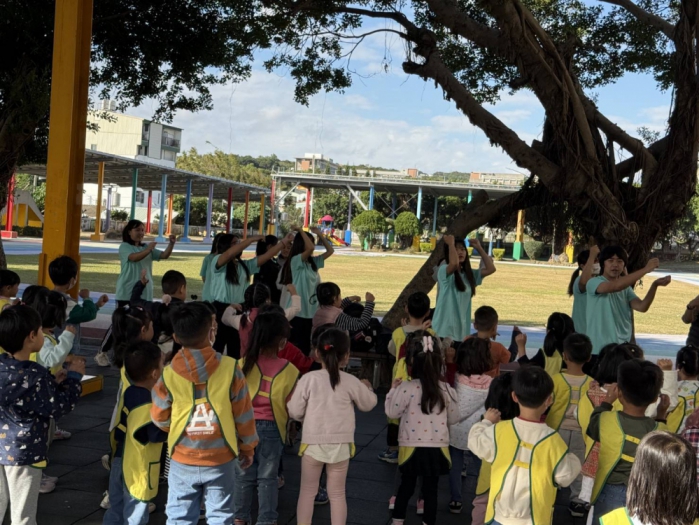 幼保系預計在25日透過課程期末的學習成果,帶領春安國小附幼及豐樂非營利幼兒園親子體驗七感遊戲與故事體能律動。藉由遊戲的設計,讓孩子們探索多樣感官體驗,激發想像力與學習興趣,而透過系上大一學生設計的八個主題律動活動,搭配故事情節中的跳躍、奔跑、爬行等動作,進行全身性的律動,展現親子活力。期盼經由充滿創意及趣味的活動形式與社區親子們共度聖誕佳節,落實大學社會責任,實現學校、社區與幼兒教育三方共贏的目標。