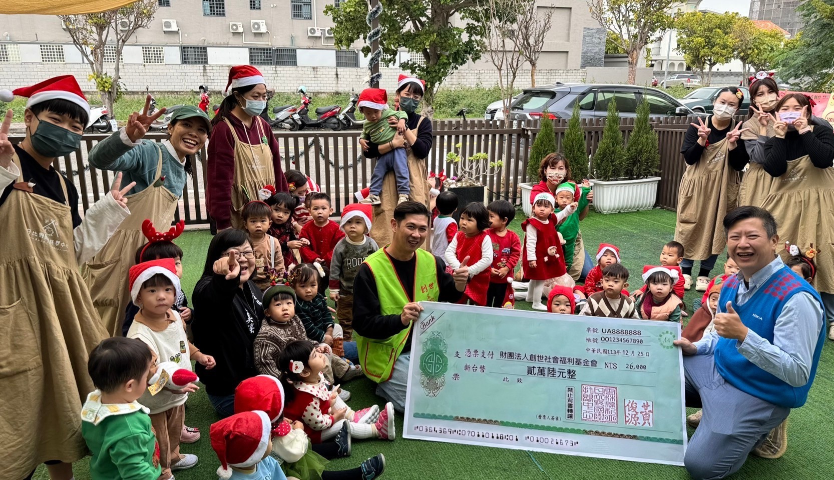 【記者蘇峯毅/雲林報導】在聖誕佳節傳遞溫暖,日比野國際托嬰中心以實際行動支持創世基金會植物人安養服務。托嬰中心執行長黃俊源攜手全體同仁,號召家長及親友參與愛心捐贈活動,短短20天內成功募集22箱、約1400片尿布及現金26000元。12月25日,特別舉辦捐贈儀式,讓幼童以聖誕老人的形象送愛到創世,呼籲社會大眾關注植物人需求,並攜手傳遞愛心。