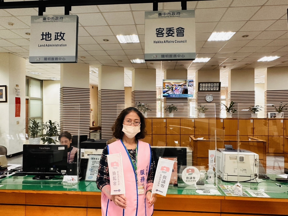 當市民走進新市政、陽明市政大樓洽公,設有客語臨櫃服務,「講客」也會通!若需法律諮詢,市府法制局跟客委會合作,在東勢區公所安排會講客語的律師提供「客語律師法律諮詢」,權益不漏接。