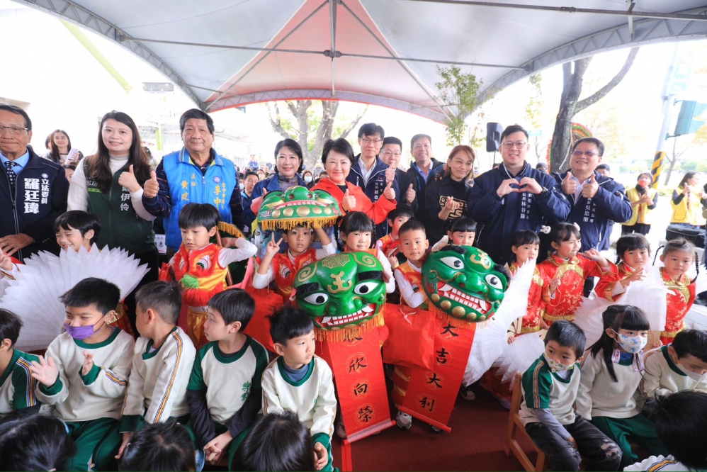樂業國小附設幼兒園新建園舍落成典禮,樂業附幼特派六隻喜洋洋小獅子表演祥獅獻瑞,可愛的模樣萌翻全場,在全園師生及現場來賓的見證與祈福下,典禮圓滿完成。市議員林霈涵、教育局長蔣偉民、數位治理局長林谷隆、教育部簡任視察許陣興出席,立法委員羅廷瑋、市議員李中、陳雅惠、江肇國也派代表共襄盛舉。