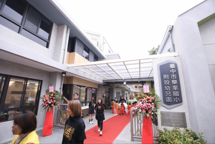 樂業國小校長吳桂芬表示,附設幼兒園新建園舍是地上2層樓建築,基地內保留原有的大樹,營造為涵養幼兒身心靈的戶外活動區,讓幼兒親近大自然,建築設計榮獲2023國家卓越建設獎─卓越獎的殊榮;特別感謝東區地方仕紳的關心與愛護,更感謝市府和教育局重視,提供師生更優質的學習環境,樂業國小附設幼兒園將持續投入心力發展園所特色,提升教保品質。