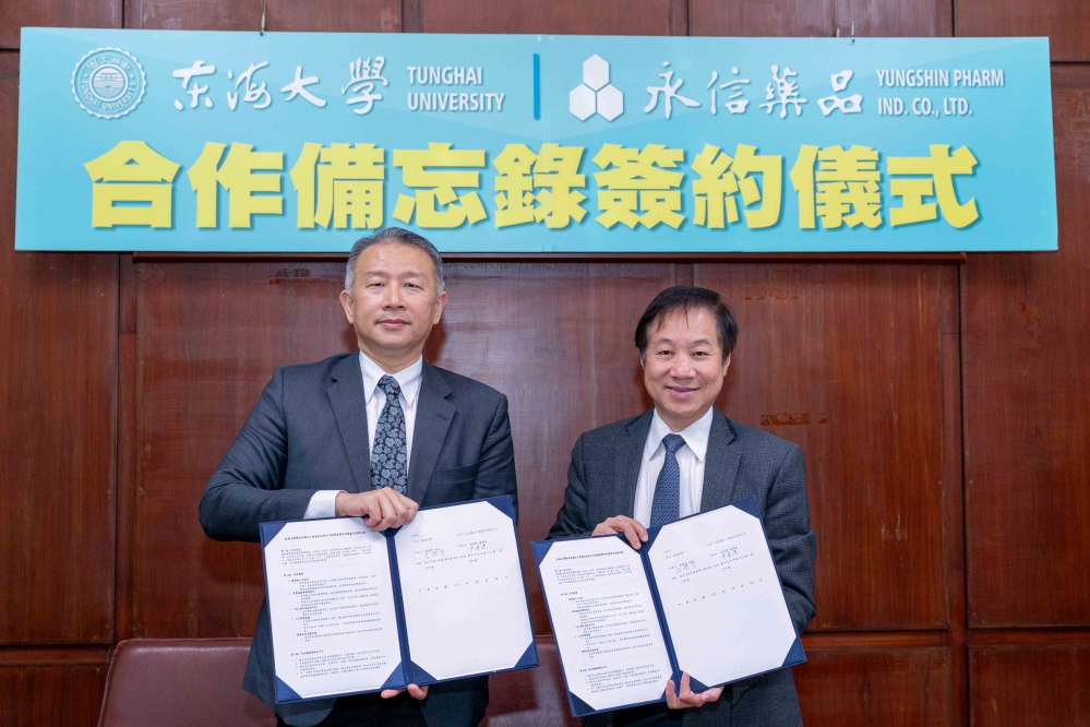 東海大學26日於校內舉行與永信藥品工業股份有限公司合作備忘錄簽約儀式,校長張國恩與永信藥品董事長李其澧代表簽署時表示,未來將透過人才培育、永續發展兩大面向,共同為學生擴展多元化的學習與就業機會,並推動減碳、資源循環與環境友善技術,打造綠色產業鏈,為社會永續注入新量能。