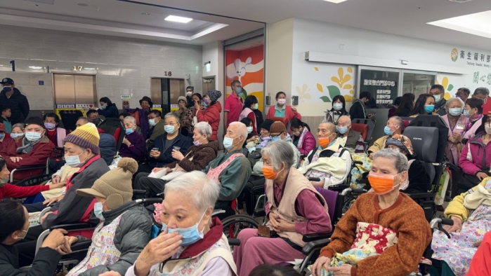 主辦該活動的護理之家督導林亞陵說,雖然寒流過境,但今天臺中醫院卻陽光普照,有上百名家屬、志工與住民長輩參與這場「家和萬事興」歌仔戲饗宴暨家屬歲末座談會,護理之家還特別貼心準備傳統歌仔戲棚下會替觀眾準備的水煮花生、菱角、米粉湯、甜米糕「歌仔戲點心」,還有天冷禦寒的金桔熱茶,讓長輩看戲吃點心,開心笑的合不攏嘴。