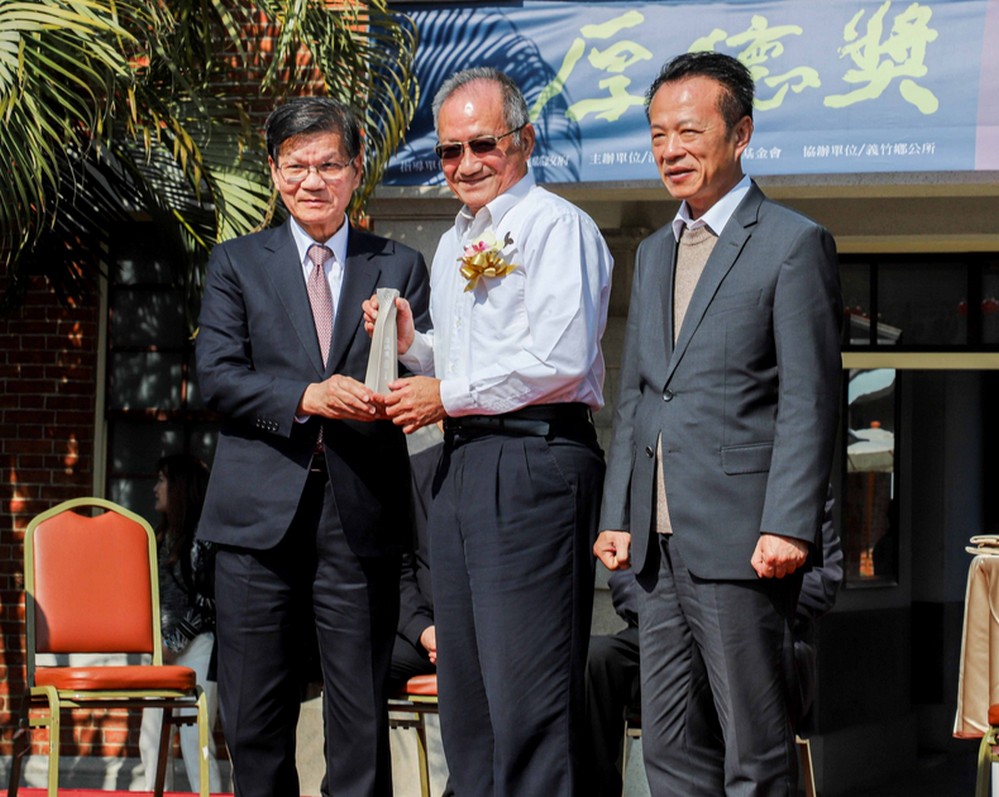 (記者任芳葵嘉義報導)嘉義縣清新閣文化藝術基金會弘掦至善美德,創立厚德獎頒給全國傑出人士,於28日在義竹鄉縣定古蹟翁清江.翁清曲宅院,舉辦首屆全國厚德獎頒獎典禮,由厚德獎創辦人翁啓惠與縣長翁章梁、故宮博物院長蕭宗煌為三位得獎者頒獎。