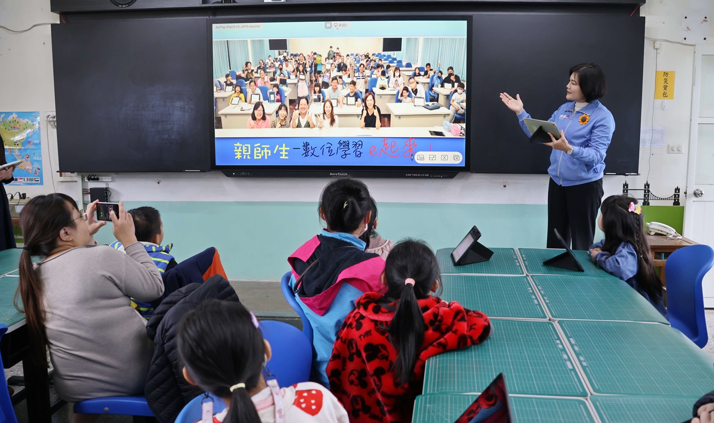 張縣長與家長及孩子們一起上課,運用智慧黑板與平板,體驗數位學習。