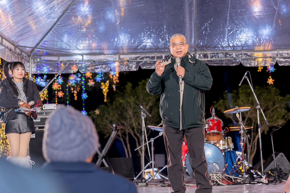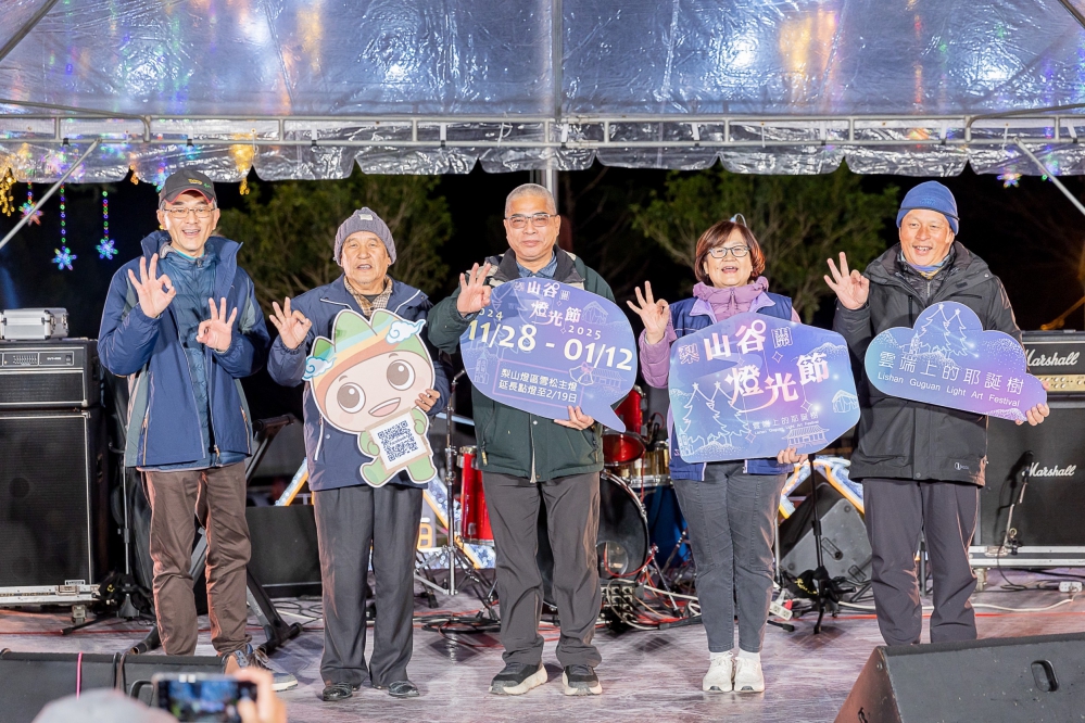 主持開場的參山處秘書蔡崇雄表示,今年山谷燈光節進入第四屆,近年已經成為全臺耶誕節、跨年必到的景點,證明已成功為大梨山地區打開知名度;在梨山賓館前的全臺海拔最高的雪松聖誕樹,更首度延長到元宵節,歡迎大家不要錯過!