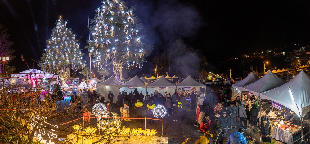 【記者林獻元台中報導】為了打造歡欣的聖誕節與跨年新年佳節慶祝氣氛,交通部觀光署參山國家風景區管理處近年在谷關、梨山打造期間限定「2024山谷燈光節」,主打全臺海拔最高的雪松聖誕樹及谷關白雪聖誕村主題燈飾,在12月連續於谷關梨山舉辦周末行銷活動,繼上周六(21日)在谷關舉行後,28日晚上在梨山賓館前廣場舉辦「梨山歲末音樂會」,結合梨山市集攤商讓現場遊客民眾品嘗特色美食,氣氛熱絡。