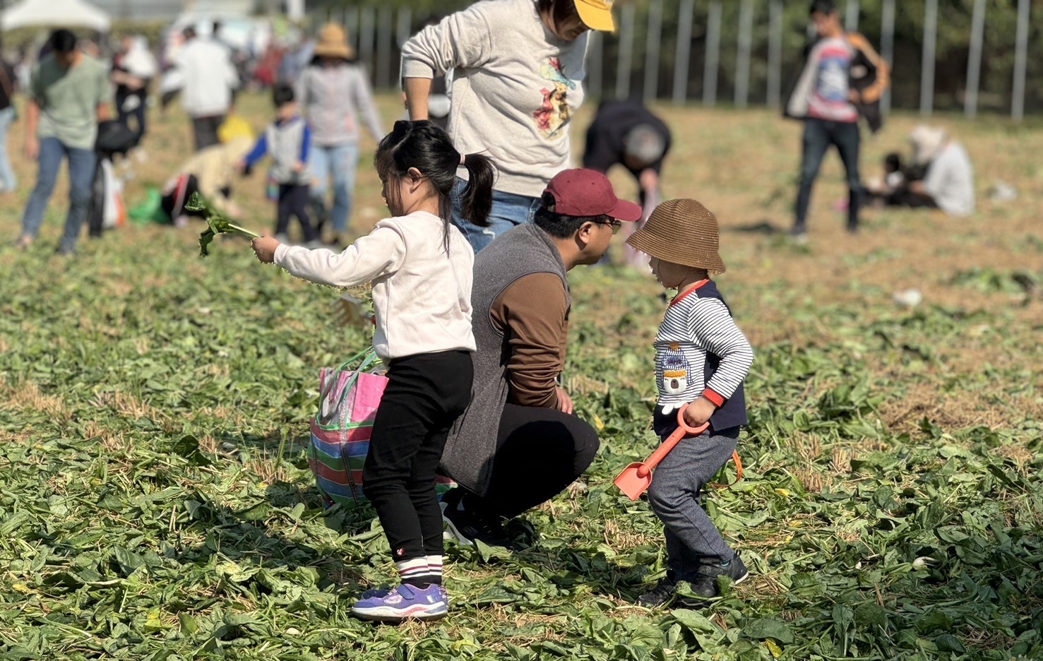現場設有專為親子設計的拔蘿蔔互動體驗,家長與孩子攜手合作,不僅收穫新鮮蘿蔔,也增進了家庭的互動與情感。(圖/記者蘇峯毅攝)