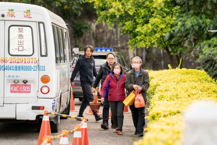 豐原觀音山納骨堂祈福安靈法會,許多家屬一早便前往觀音山納骨堂準備祭祀事宜,為紓解觀音山納骨堂車位不足現象,生管處特別提供20人座接駁專車2輛,往返豐原區第八公墓至觀音山納骨堂間,隨招隨停方便參加民眾搭乘。