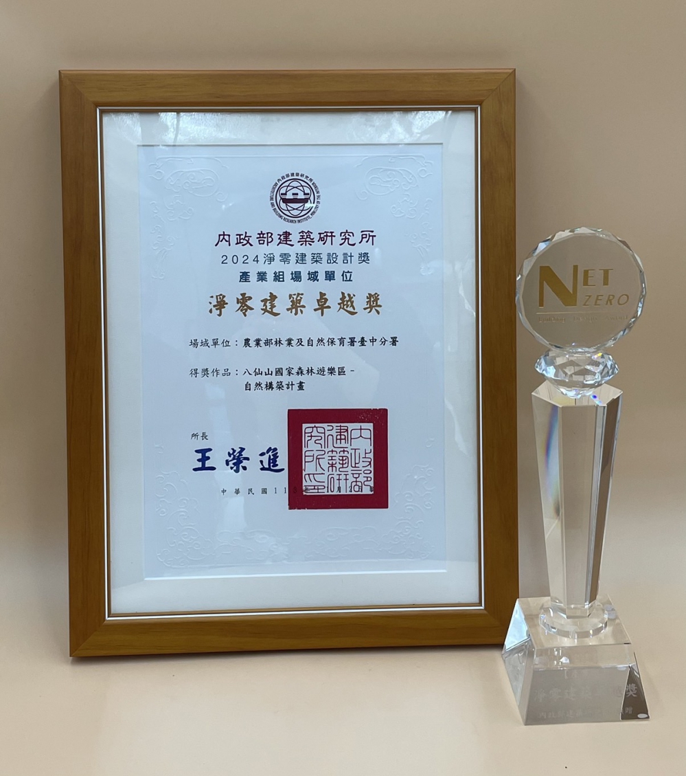 【記者張原銘、張皓傑台中報導】為結合自然景觀特色及提供優質服務體驗,林業及自然保育署臺中分署重新整建八仙山國家森林遊樂區內3座竹藝特色公廁及1座休憩平台,除優化公廁環境外,利用國產竹材及獨特空間設計,落實建築低碳轉型,提升建築效能指標,榮獲內政部建築研究所2024淨零建築卓越獎。新穎優美的造型,成為園區新的打卡景點。