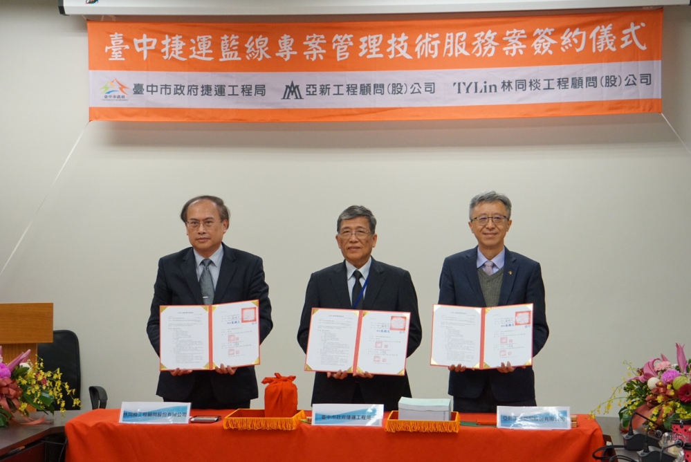 【記者林獻元台中報導】台中市政府捷運工程局元旦由市長盧秀燕揭牌成立後,新任捷運局長蘇瑞文立即帶領團隊開創捷運藍線新進程!2日新年第一個上班日,順利與亞新工程顧問股份有限公司、林同棪工程顧問股份有限公司簽署「捷運藍線建設計畫委託專案管理技術服務案」合約。捷運局長蘇瑞文指出,市府延攬優質廠商協助順利推動捷運藍線計畫,構築優良捷運工程,推動藍線建設計畫進入新發展階段,力拚今年動工,打造台中捷運城市。