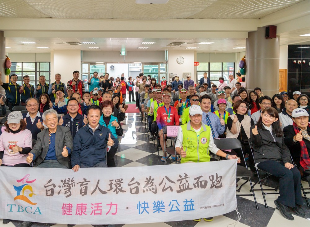 盲人環台為公益而跑抵達嘉義縣 用雙腳跑出精彩每一步協助15個社福團體募集年菜經費。(圖/嘉義縣政府提供)