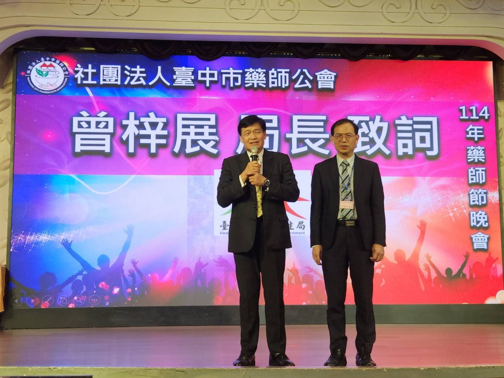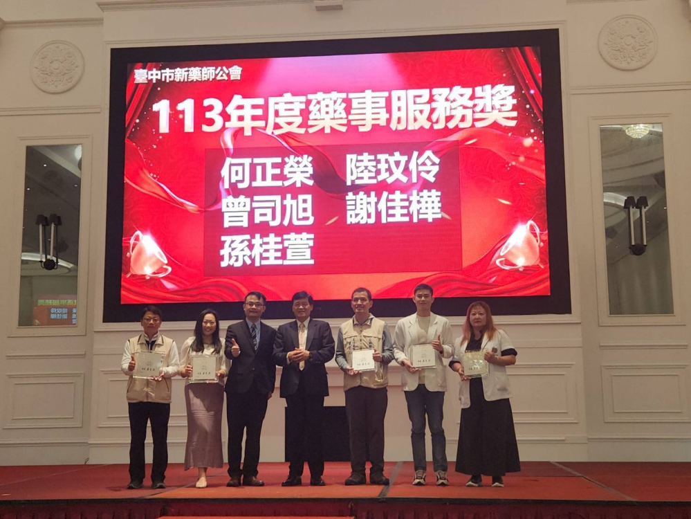 【記者林獻元台中報導】為感謝台中市藥事人員長期守護市民用藥安全,衛生局長曾梓展代表5日晚上在社團法人台中市新藥師公會及藥師公會舉辦的藥師節慶祝大會頒發「藥事服務獎」,表彰何正榮、陸玟伶、曾司旭、謝佳樺、孫桂萱、林堅煌、吳玉品、陳美玲、吳世珍、黃寶珠、丁品方、林玉味、陳仙洲、呂漢津、林清潭、陳碧連等16名優秀藥師及藥劑生,肯定他們為民服務、辛勞付出,獲得現場藥師們熱烈迴響。
