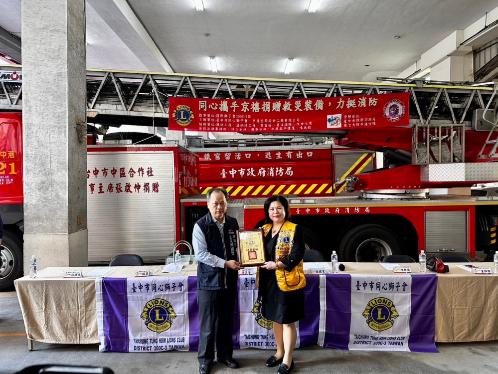台中市同心獅子會會長張美華表示,此次捐贈是對消防人員辛勤工作的支持,盼這些救災裝備器材能在災難發生時,幫助消防人員更快速且安全地完成救援任務。