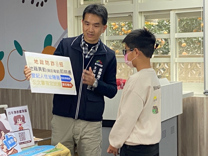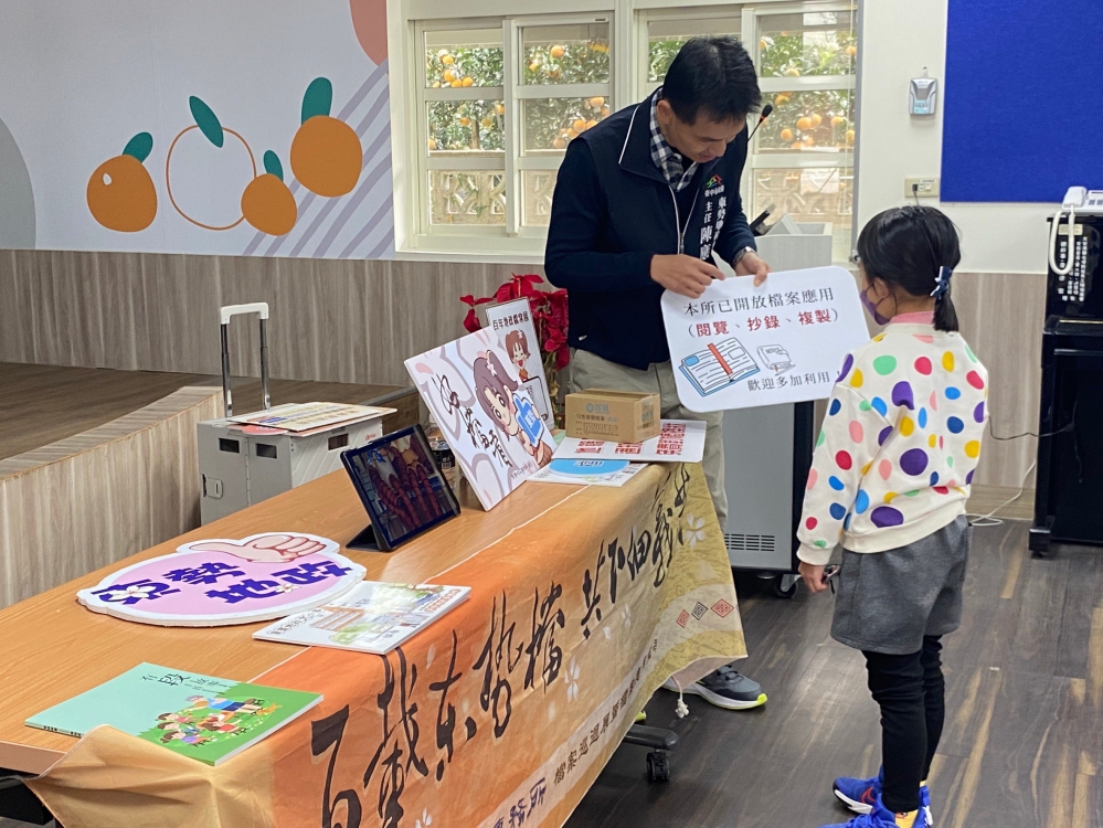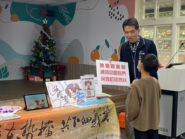 東勢地政事務所主任陳應欽進一步說明,感謝明正國小提供宣傳地政業務與檔案應用的時間與場地,尤其劉校長為服務在地鄉親,積極爭取經費在廢棄水利溝公有地上興建幼兒園,讓家長免受風吹雨淋載幼童到卓蘭托育之苦,小朋友們也可以在睡眠充足下發育成長,辦學精神令人感佩。