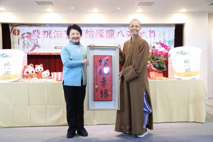 盧秀燕也說,歲末年初是市府同仁最繁忙的時刻,透過臘八粥的祝福,盼市府同仁都能工作順心、健康平安。去年因有臘八粥的祝福,台中奪得全國幸福宜居城市第一名,透過今日法寶節也祈求286萬位市民朋友新的一年更加順利。