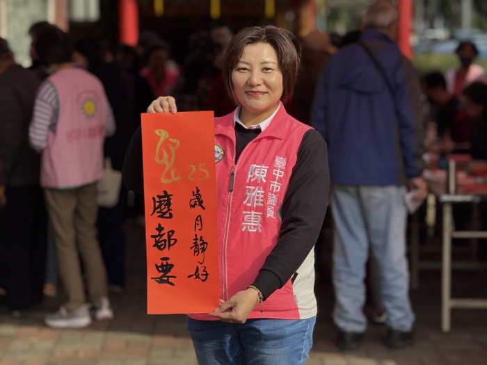 東興里長宋茂榮表示,里辦公處結合台中市水噹噹關懷協會、台灣省書畫教育協會與市議員陳雅惠服務處,舉辦免費寫春聯、送春聯活動,今年正式邁入第16年,希望現場揮毫與民眾結緣,大家都平安、過好年。