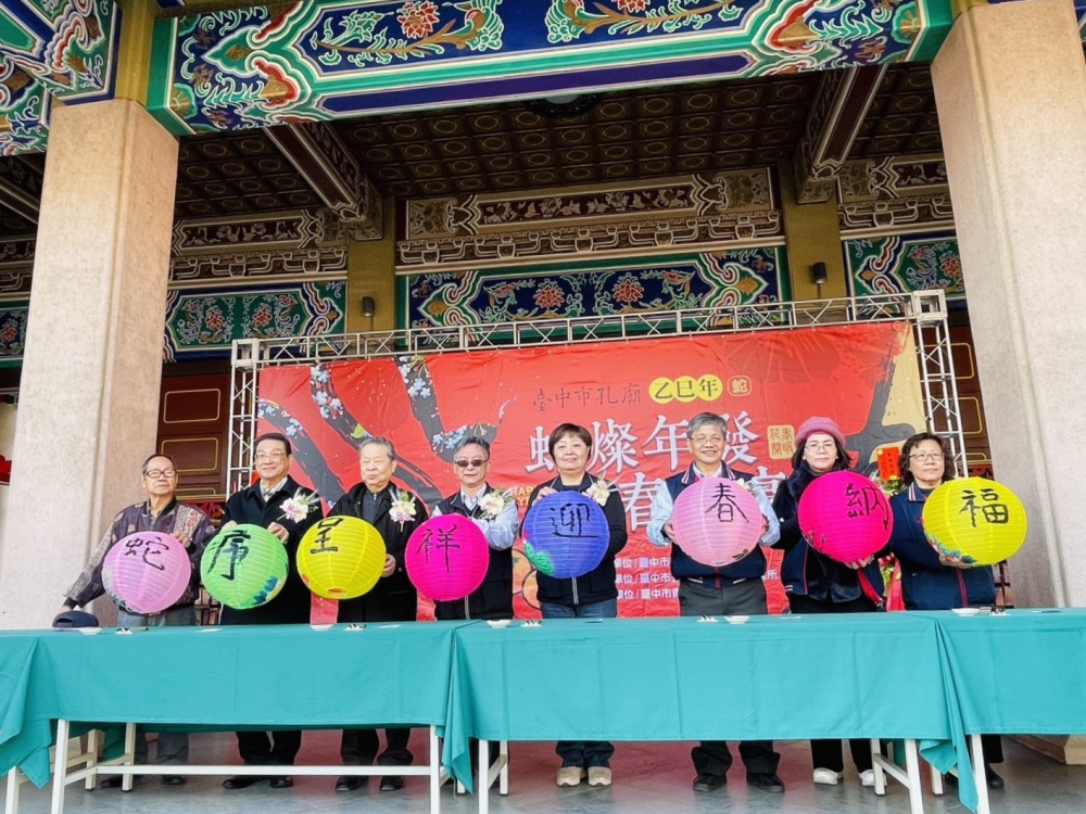 民政局表示,開筆儀式由民政局副局長歐陽明、台中孔廟所長李書華、台灣孔子研究院長張世良博士、台中市青溪新文藝學會理事長林炳坵、榮譽會長高翠滿、副理事長鍾翠媖、顧問謝重信及台中市文教公益慈善會長何國雄博士擔任開筆官,共同書寫「蛇序呈祥、迎春納福」,象徵蛇年招福吉祥。