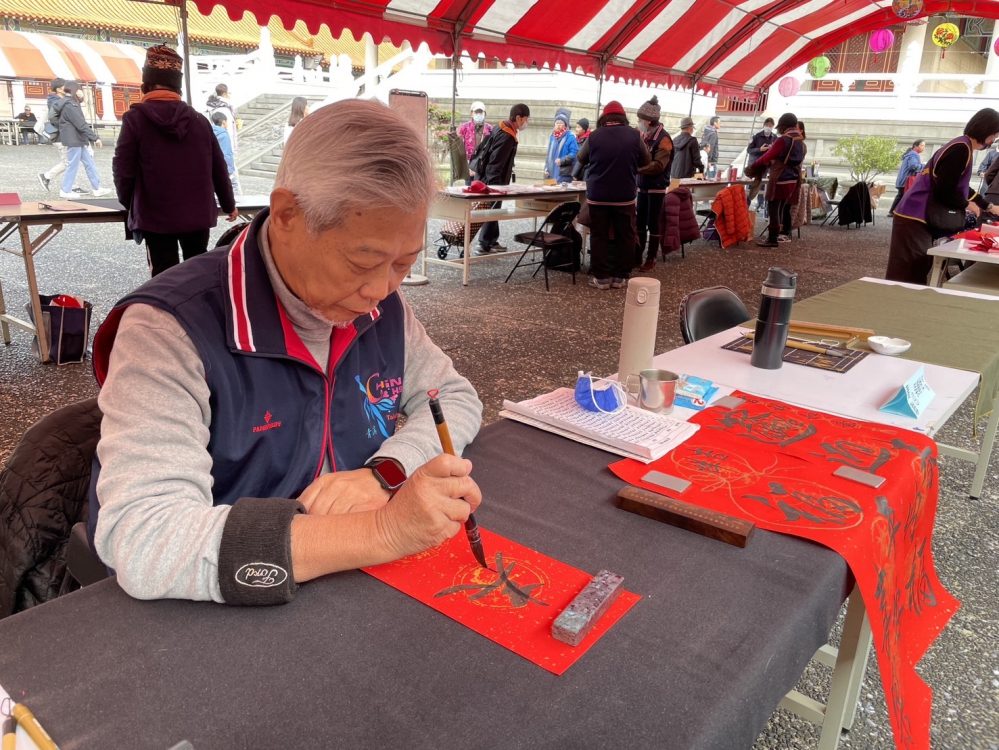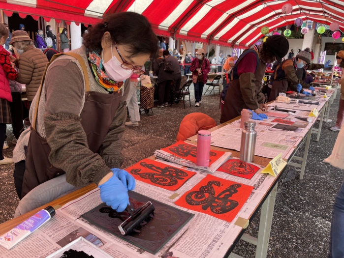 【記者林獻元台中報導】金蛇獻瑞迎新春!台中市孔廟攜手台中市青溪新文藝學會11日舉辦乙巳年「蛇燦年發、迎春揮毫」活動,邀請30位書法名家現場揮毫,讓民眾免費索取年字年畫,還有兒童年畫拓印體驗及可愛討喜的柿柿如意吊飾製作,許多民眾一早冒著低溫到場排隊等候索取、體驗。民政局副局長歐陽明代表出席活動表示,台中孔廟已連續10年舉辦迎春揮毫活動,期盼將好運和祝福傳遞給所有市民,並祝賀市民朋友蛇年納福、平安健康。