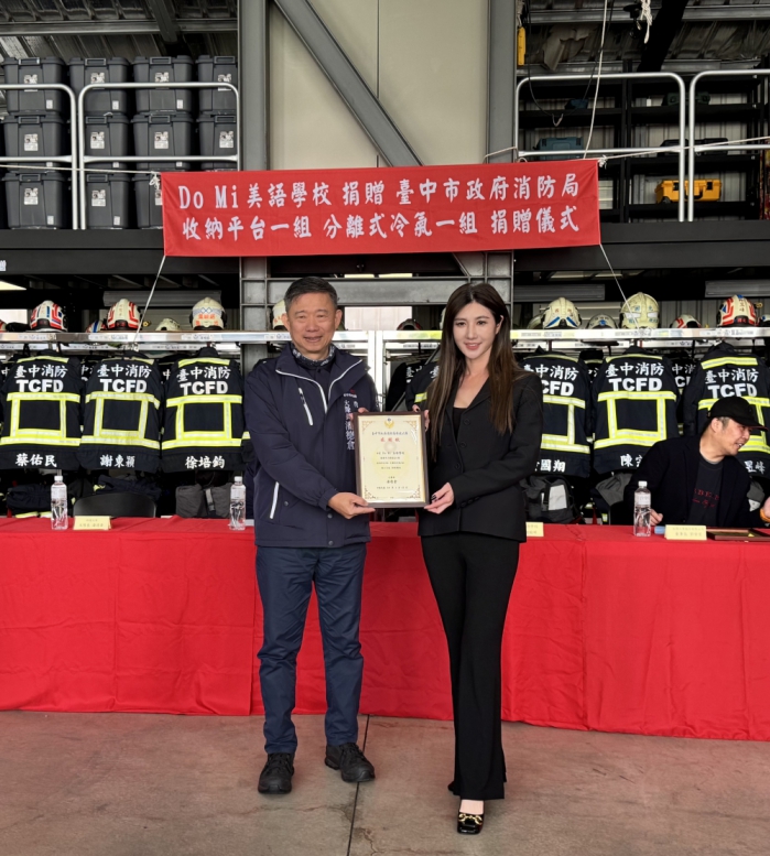 【記者林重鎣台中報導】Do Mi美語學校創辦人陳榆妡秉持「取之於社會、用之於社會」的理念,捐贈冷氣給台中市特搜大隊國光分隊後勤暨訓練平台及值班室,台中市消防局於12日在國光分隊舉辦捐贈儀式,由簡任技正楊純凱主持,感謝陳小姐熱心公益。消防局表示,此項捐贈將有效提升消防局在救災任務中的後勤支援與訓練效能,進一步強化救災能力,守護民眾生命財產安全,感謝Do Mi美語學校對社會的關懷與回饋精神。