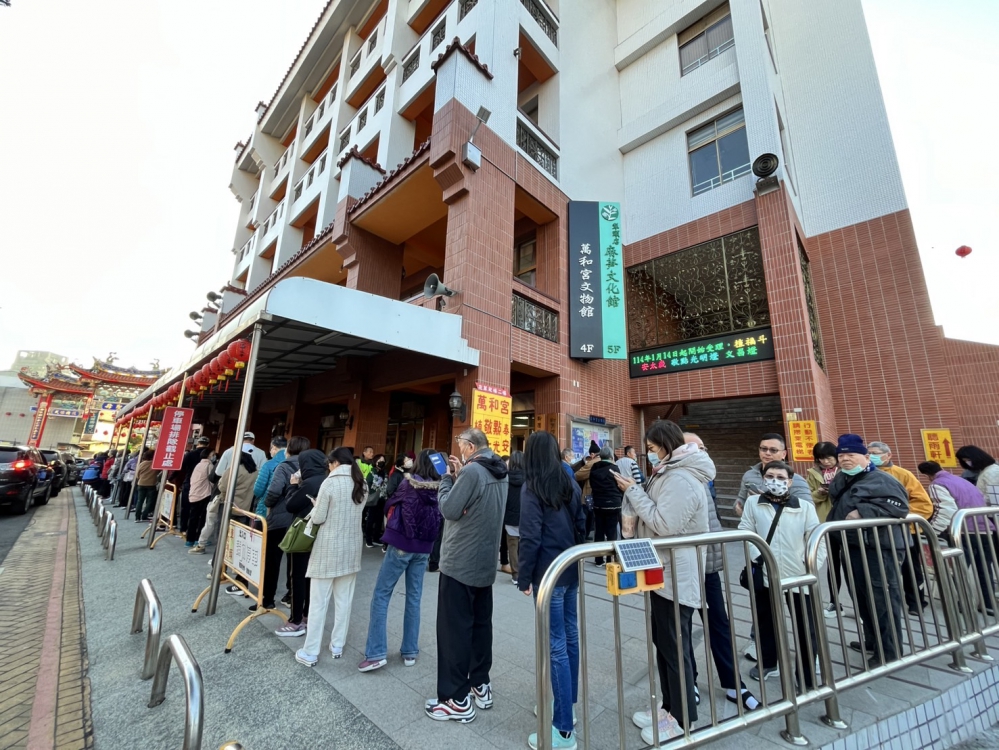 【記者林獻元台中報導】迎接乙已蛇年,香火鼎盛的臺中市萬和宮,14日開始受理植福斗、敬點光明燈及文昌燈以及安奉太歲,大早6點多就出現人潮;秩序井然的大排長龍盛況。