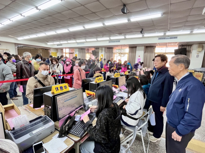 14日恰逢農曆12月15日,清晨6點多就有鄉親在萬和文化大樓排隊等候,大排長龍的場面呈現。他們說,提前感受迎接新歲的氣氛。董事長蕭清杰與常務監事簡萬水,到場關心作業流程,看到工作人員熟練操作,覺得滿意。他也提醒要以客為尊,注意禮節,並且仔細核對資料,減少錯誤。