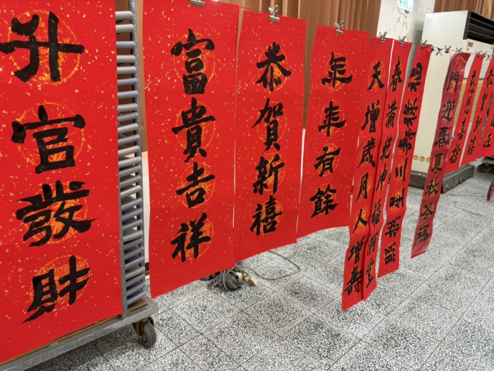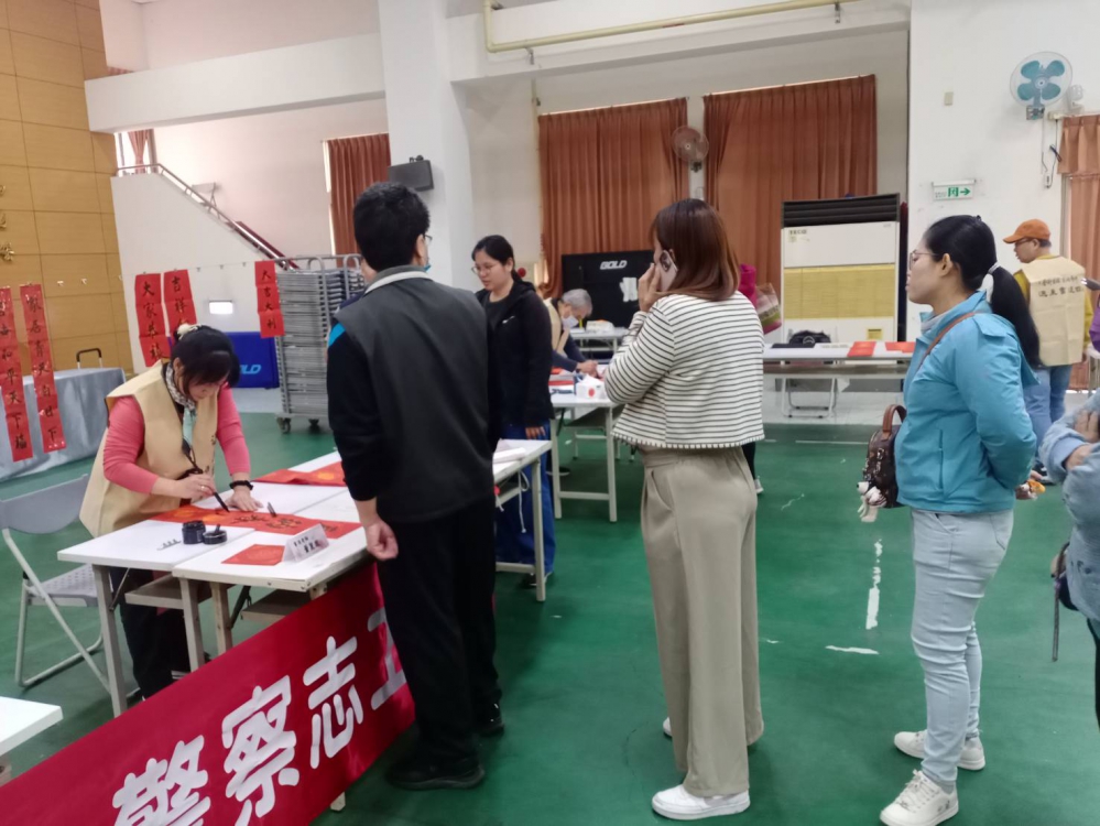 分局長林鼎超表示,春聯不僅是傳統文化的象徵,更是傳遞祝福和溫暖的方式,藉揮毫展現警察機關的關懷,希望透過春聯向民眾傳遞114年加強重要節日安全維護工作三大主軸「治安平穩、交通順暢、民眾安心」的理念,呼籲民眾在春節期間車潮、人潮增加之際,務必遵守交通規則,遠離酒駕和危險駕駛行為,讓每個家庭都能平安過好年,請上網至警政署設立的「打詐儀表板」查看,隨時提高警覺,防範詐騙,安心過好年。