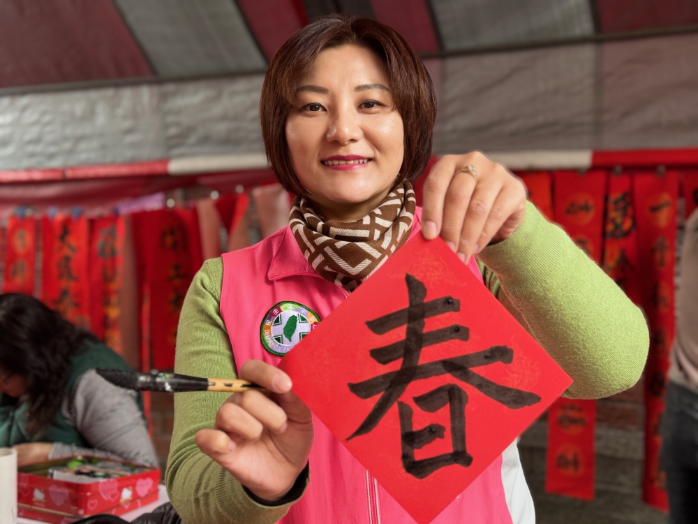 陳雅惠也應民眾要求,捲起衣袖,小試身手,寫下「春」字,提前向大家拜早年,祝福大家新春愉快,都有「春吉」。她指出,迎接2025蛇年到來,為表達對鄉親的新春祝福,服務處也印製了「蛇躍龍騰」春聯,數量有限,有需要者,可以前往南區正義街236號免費索取。