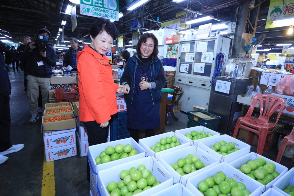 市長盧秀燕說,台中魚市場與果菜批發市場是中部地區最大的批發市場,因此今天特地來視察,了解春節前蔬果及魚貨海鮮供應情形;蔬果供應情形及價格與往年差不多,魚貨海鮮供應量則較往年多,價格仍屬平穩。