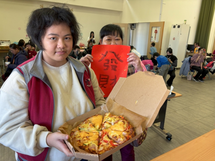 「小龍年將至,新春旺旺來」,彰化家扶員林展愛志工隊,突破往年傳統,不再只是到家扶親子家庭慰問,今年在員林服務處,舉辦迎春活動,邀60名家扶親子手作披薩、揮毫春聯,並挑戰趣味闖關遊戲,完成闖關後獲新春祝福禮物。