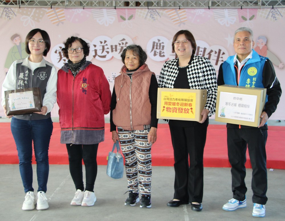 鹿草鄉公所舉辦「寒冬送暖 鹿草相伴」關懷獨居長者活動,邀請台灣活力老化推展協會及旅北鹿草同鄉會一同參與獻上關心。(圖/鹿草鄉公所提供)