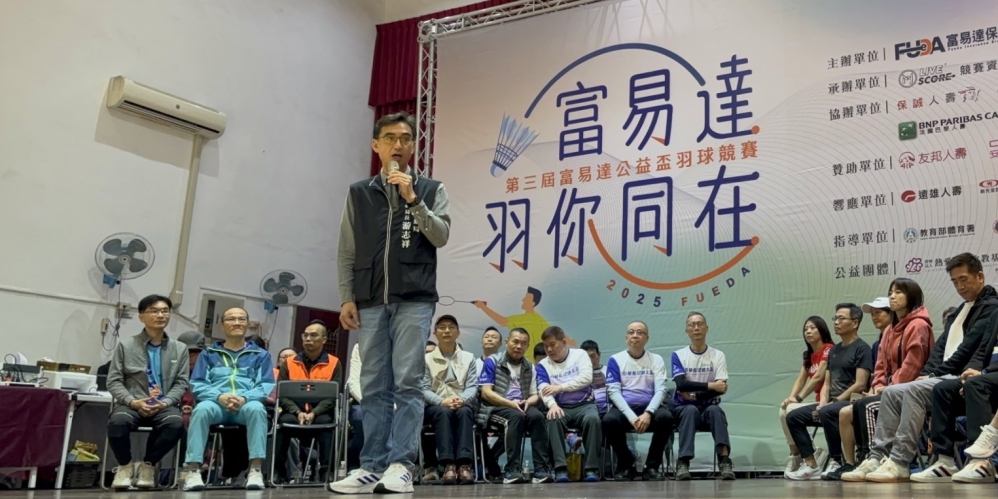 「富易達第三屆公益盃羽球賽——羽你同在」開幕典禮,運動局長游志祥、富易達保險經紀人股份有限公司董事長張志成、中華民國羽球協會裁判長黃俊霖、中華希望羽球協會理事長帥祖強、熱愛生命文教基金會理事長方嘉綺、伊甸基金會中區資源中心主任蘇真真及各贊助單位代表均到場為選手加油打氣。
