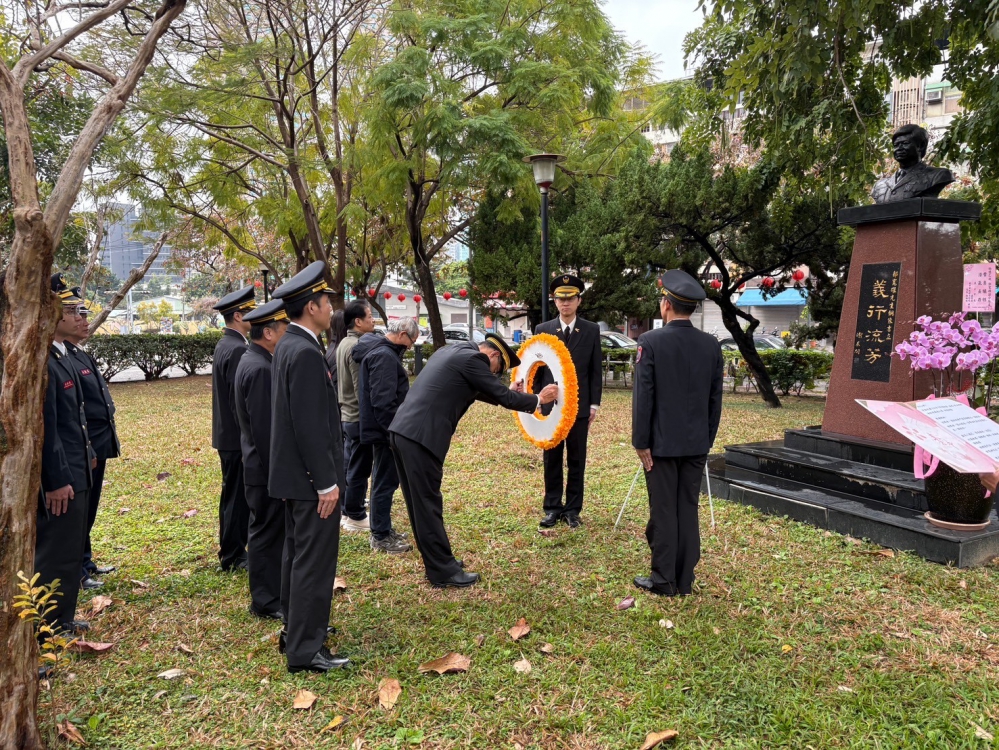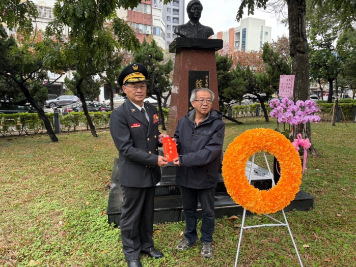 消防局表示,今日追思悼祭地點,為南區半平厝公園(原崇倫公園)及英才公園,分別在已故小隊長陳俊宏、義消副分隊長郭寬雄銅像前獻花,並行鞠躬禮,以感念他們的英勇事蹟。