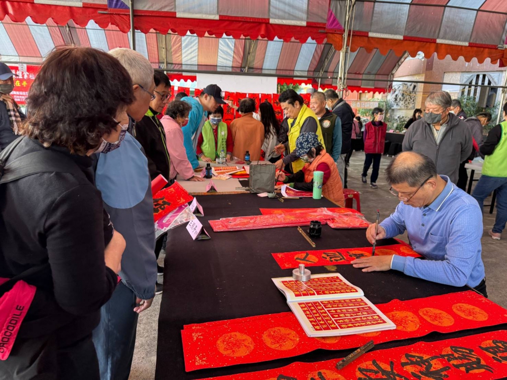 【記者林獻元台中報導】農曆新年將至,社團法人台中市城鄉發展協會19日舉辦「畫蛇添福 好蛇城鄉 福運旺旺來」活動,現場除有限量紅包袋、春聯發放;書法老師現場揮毫;造型燈籠手作DIY;中醫師義診&整復推拿外,還有聖筊王挑戰賽,高潮迭起,喜氣洋洋,充滿年味。
