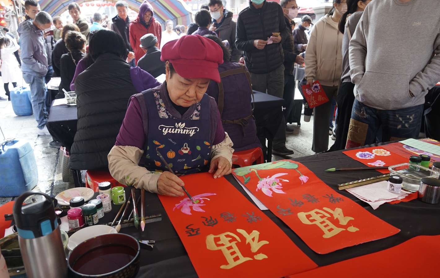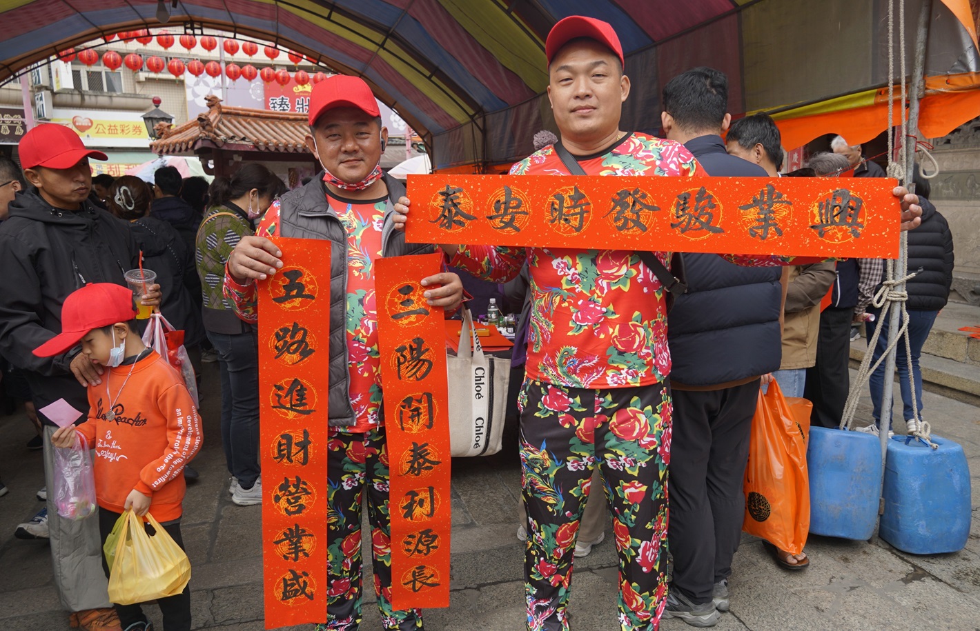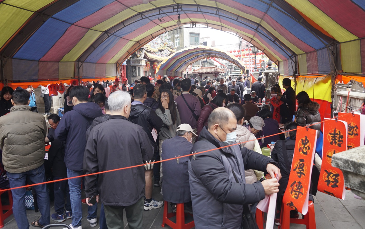 揮毫贈送春聯,吸引數百名信眾及香客參與,現場洋溢著濃厚的年節氛圍與宗教文化的溫暖。