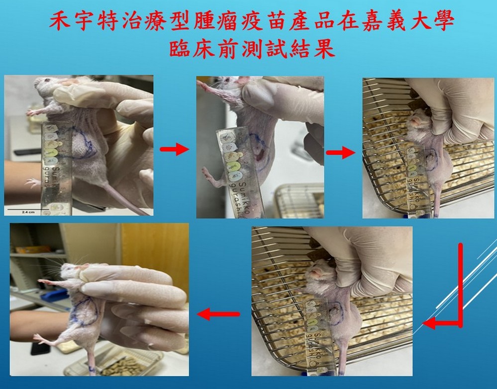 臨床前測試結果顯示,禾宇特的治療型腫瘤疫苗產品可以把小鼠的腫瘤細胞徹底除掉,同時讓腫瘤造成的傷口完全修復並長出新的毛髮。腫瘤會降低人類的平均壽命,更造成醫療資源上的嚴重負擔。