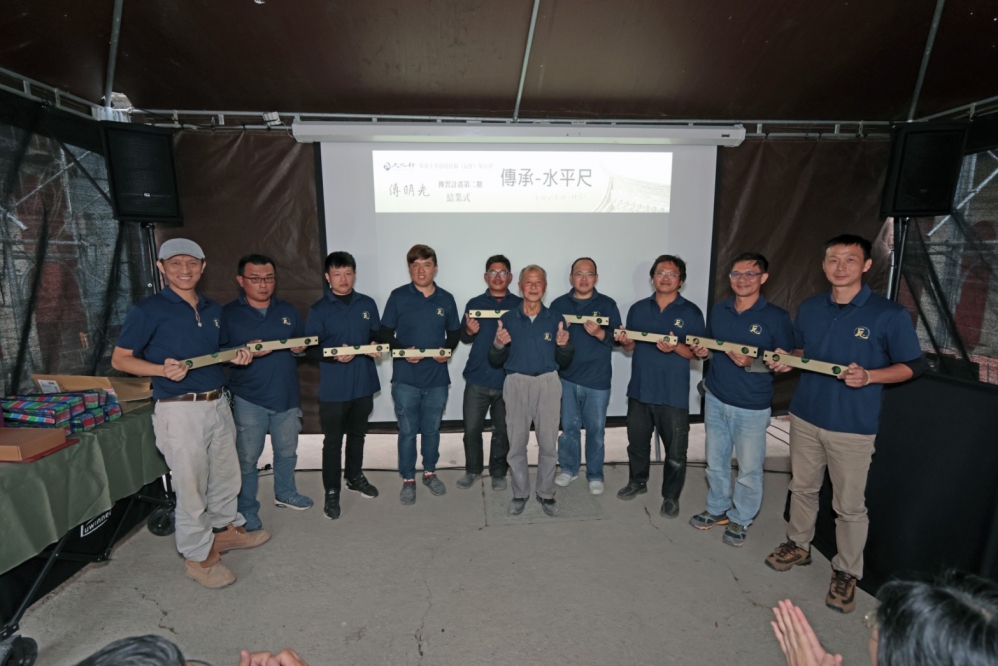 結業式同時也舉辦格外有意義的傳承儀式,由明光司將他口中的老師-「水平尺」逐一交給每位學員,象徵其技術及精神的傳承,並勉勵學員學習水平尺的精確精神。