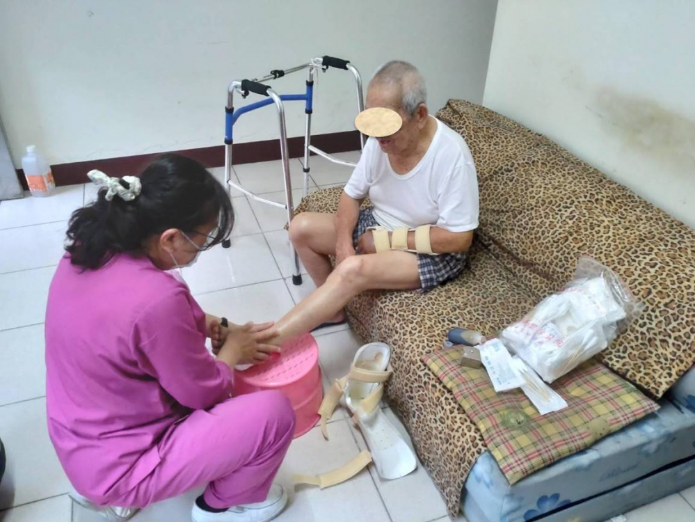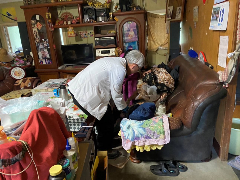 當天雖為假日,但陳翊榛非常耐心用了將近1個小時的時間向其說明居家安療照醫療能提供那些幫助,並考量他們照護的迫切性,立馬於隔天星期一下午完成既定訪視行程後,安排安寧科主任蔡佑杰醫師到家中訪視,了解他們的需求及照護困難後,陳翊榛返回醫院拿取愛心捐贈的氣墊床、導尿管及相關醫療用品後,又再度折返,幫爸爸洗澡、刮鬍子、更換尿管及傷口換藥,連晚飯都沒吃一直忙到晚上八點多。