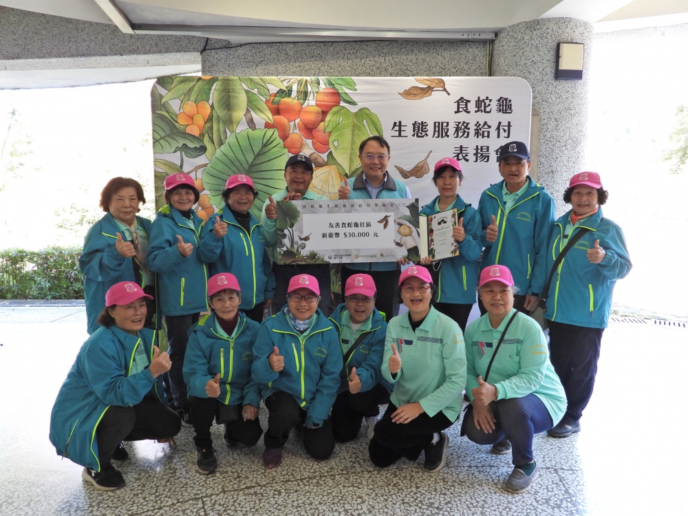 林業保育署臺中分署長張弘毅表示,人與自然和諧共生是推動保育工作重要的核心價值,食蛇龜生態服務給付能夠成功推動,有賴於在地居民的認同,願意主動成為第一線的守護者,保育工作就能轉化為在地的實際行動。透過推動友善農業和生態服務給付,保育政策融入地方生活,該分署將持續與在地居民攜手合作,逐步擴大友善環境涵蓋範圍,讓更多物種在永續生態農業中生生不息。