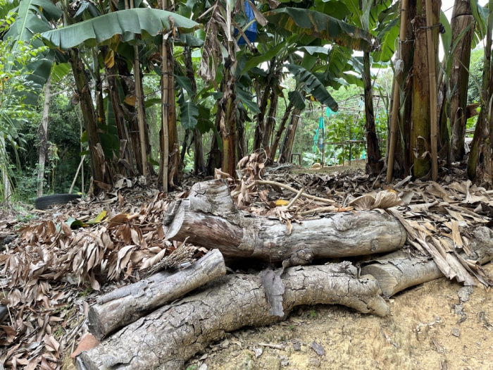 農民將修剪下來的粗幹枝條集中堆放,提供食蛇龜及其他動物躲藏利用。(記者張原銘攝) -