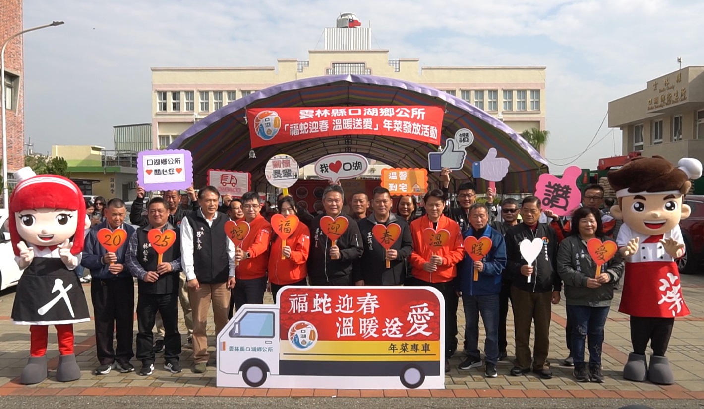 口湖鄉公所22日上午攜手代表會及企業界,舉辦了114年度「福蛇迎春 溫暖送愛」年菜發放活動。
